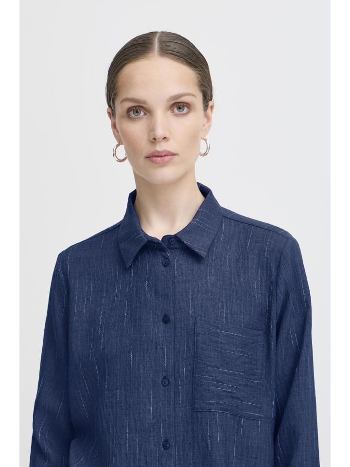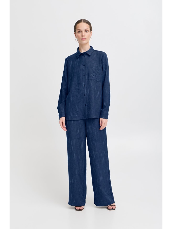 Рубашка с длинными рукавами - IXREMI Regular fit в цвете Total Eclipse с пинст. ICHI