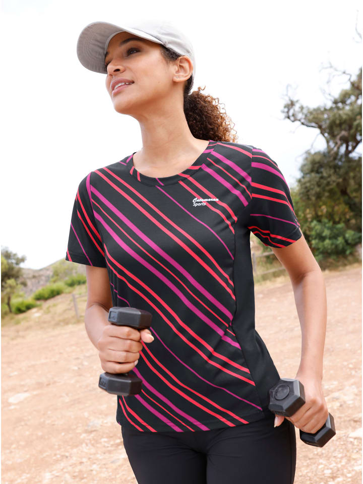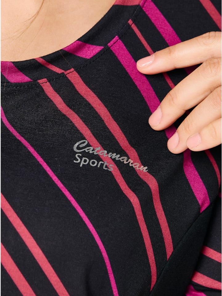 Футболка Catamaran Sports в диагональную полоску или однотонная: контрастные боковые вставки придают ей элегантный вид. Дышащая ткань Freshnezz, невероятно эластичная благодаря дополнительной эластичности - идеальный вариант для спорта и отдыха! Серебристый мерцающий логотип на уровне груди.