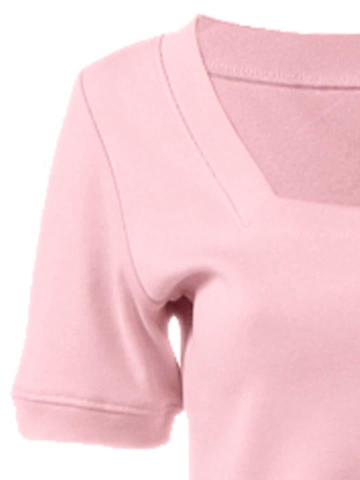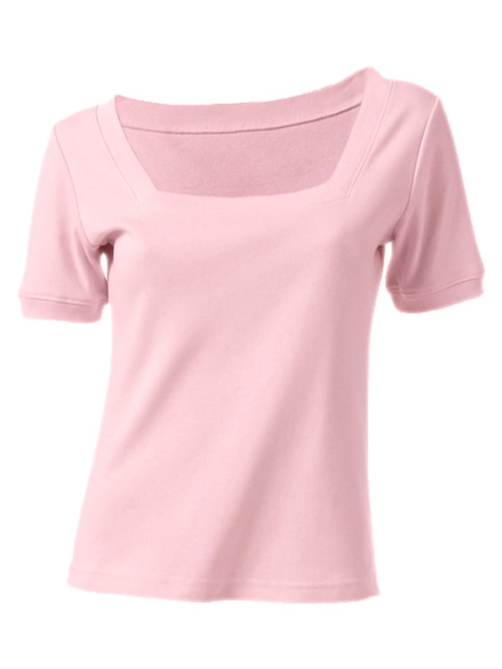 Футболка с квадратным вырезом и широким вырезом. Изготовлена из приятной на ощупь тонкой трикотажной ткани в рубчик. Облегающий крой.