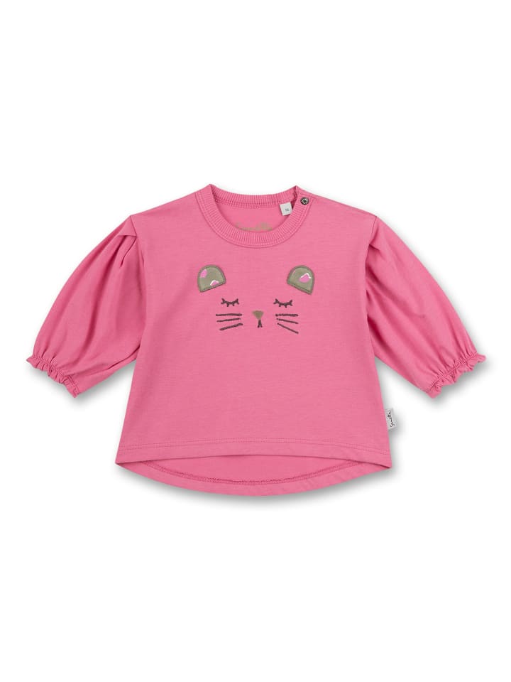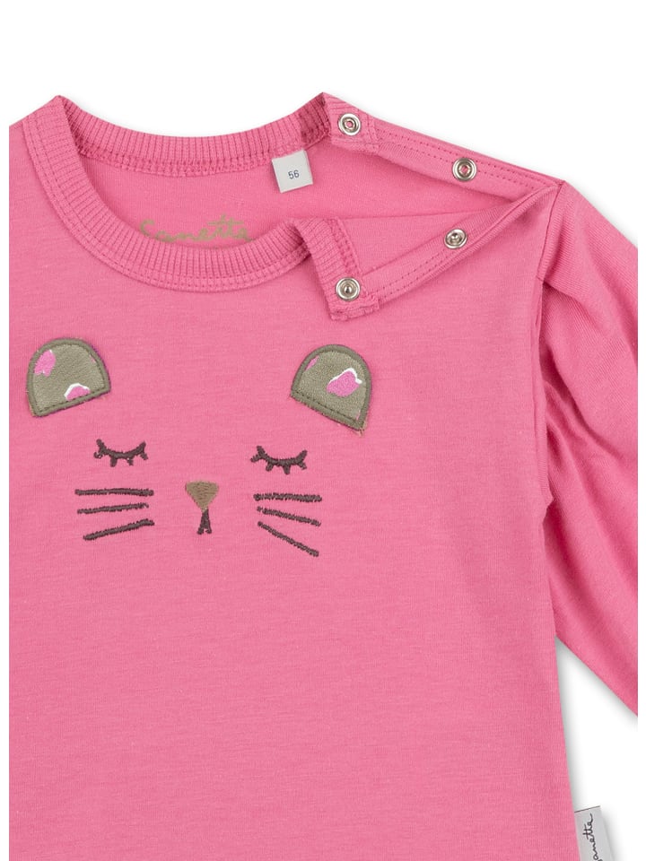Рубашка с длинными рукавами для девочек от Sanetta Kidswear розового цвета, выполненная с любовью и украшенная милой вышитой мордочкой кота.