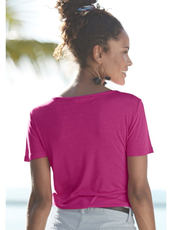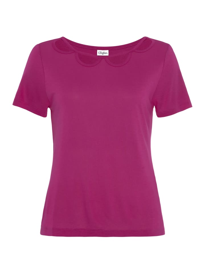 Однотонная футболка от Buffalo с модными вырезами спереди на круглом вырезе. Свободный крой. Прямой подол. Мягкая, струящаяся вискоза.
