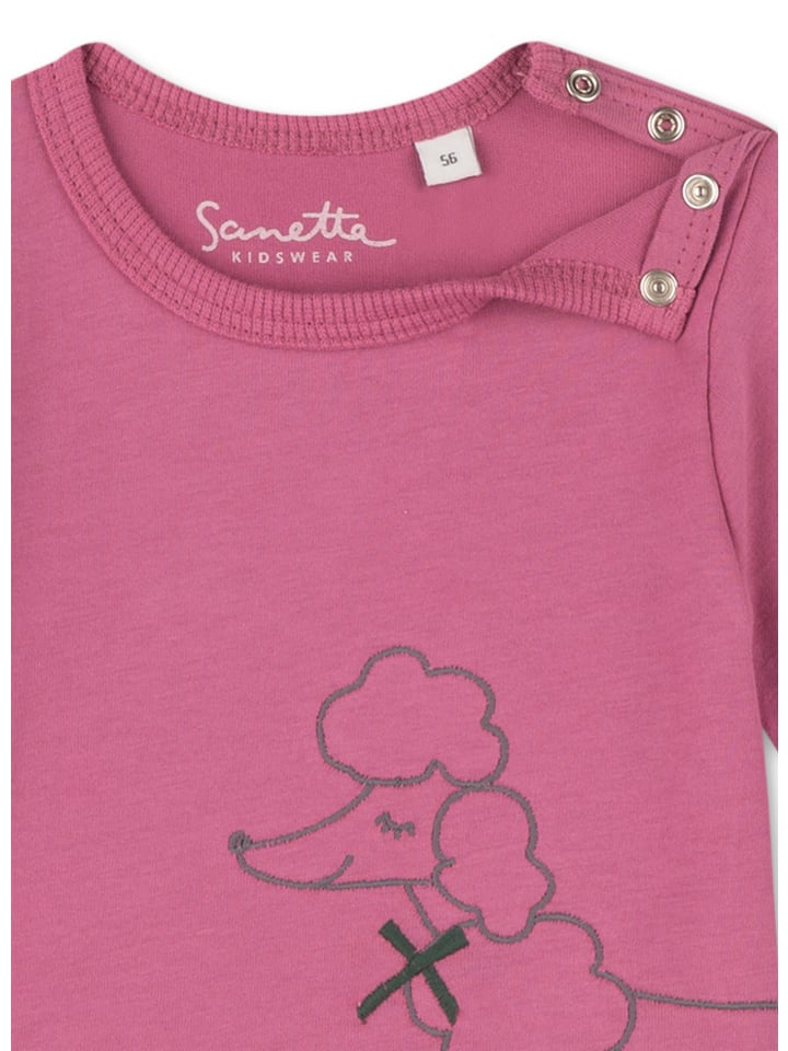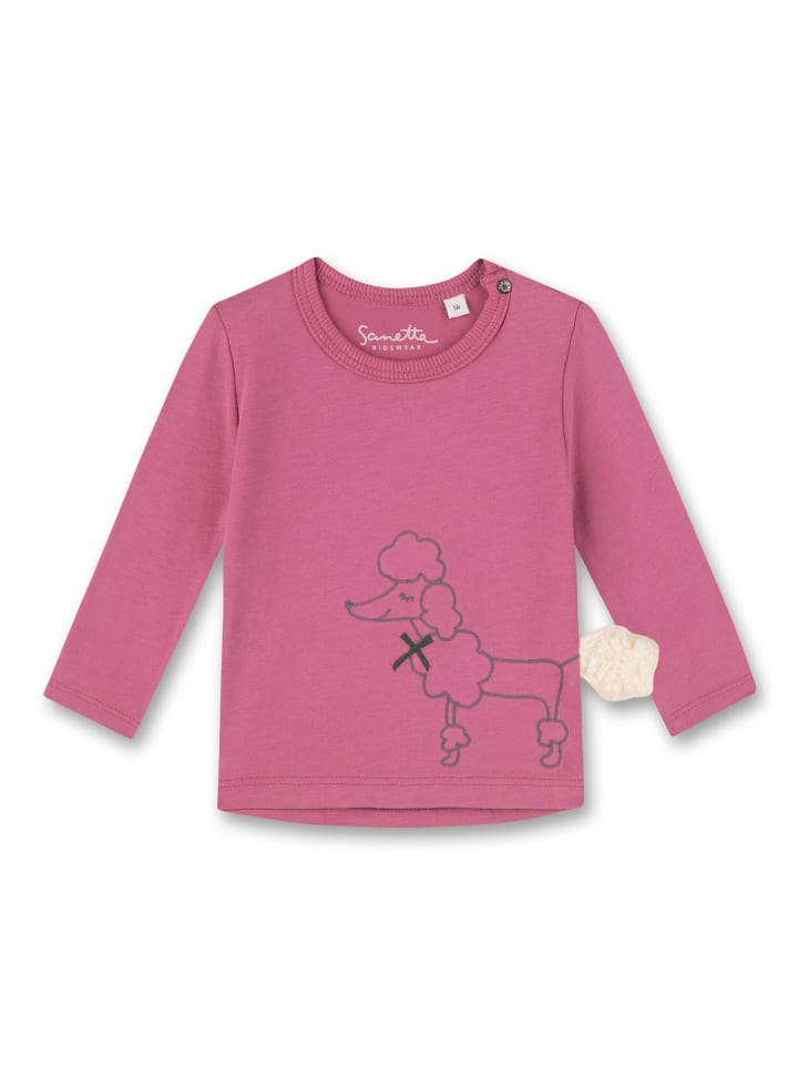 Милый топ с длинными рукавами для девочек ярко-розового цвета от Sanetta Kidswear со стильным изображением пуделя и небольшой аппликацией сбоку.