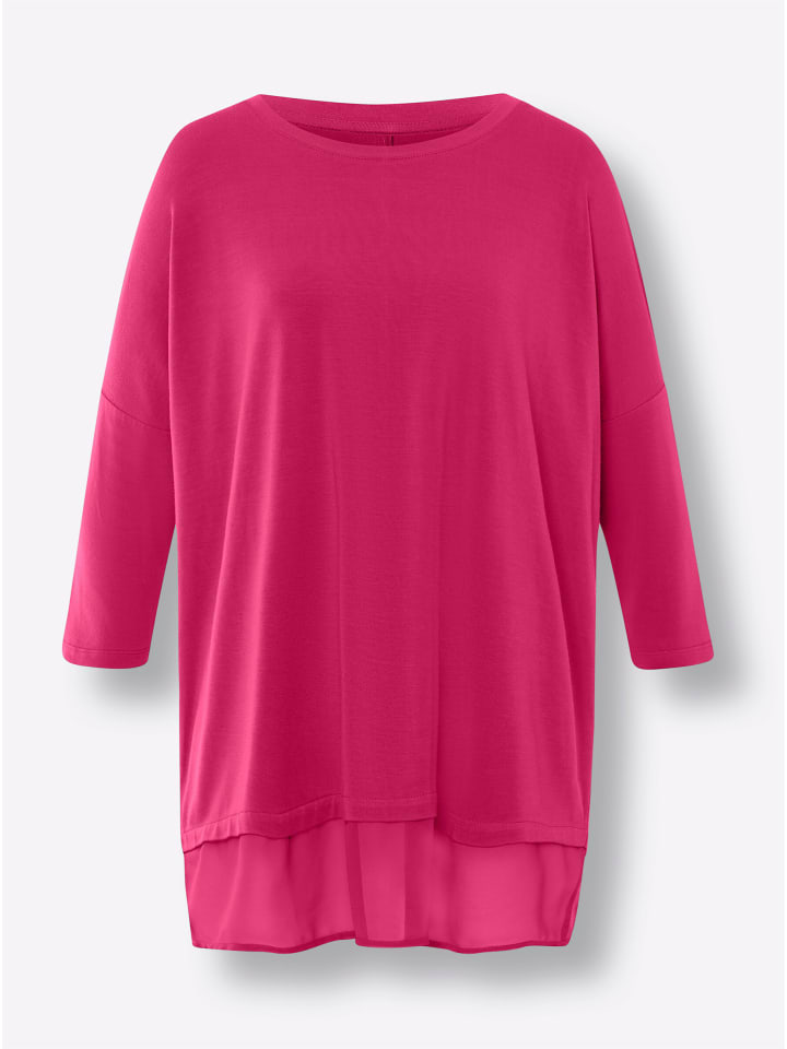 Рубашка свободного кроя. Мягкая и струящаяся, с широким шифоновым подолом. Подчеркивает фигуру, спущенная линия плеча и длинные рукава.