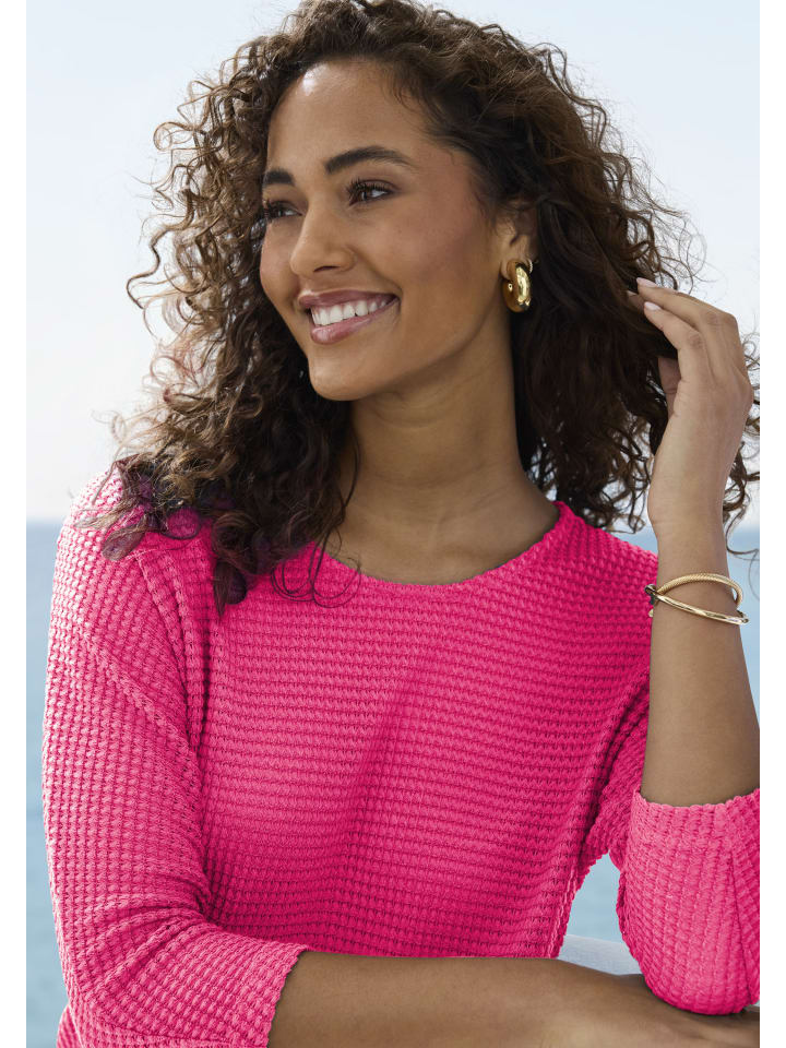 Рубашка с длинными рукавами от Vivance с слегка прозрачной вафельной текстурой. Круглый вырез горловины. Свободный крой. Ткань, не требующая особого ухода, изготовлена из переработанного полиэстера.