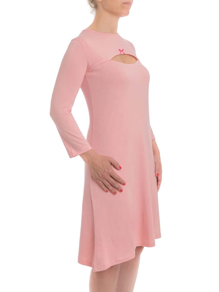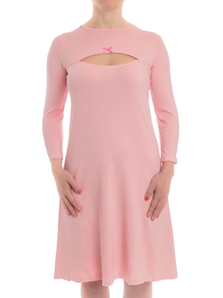 Lovelymama - Красивые вещи для мам. Наше платье для кормления «lovelydress» продуманно разработано для беременных и кормящих мам. Мамы заслуживают чувствовать себя комфортно, поддержанными и красивыми. Эта ночная рубашка и платье подходят для современных и стильных мам. Одним движением грудь обнажается без неловких поправок. При этом плечи и руки остаются закрытыми. Специальные резинки на вырезе для кормления гарантируют, что платье всегда возвращается в исходную форму - независимо от того, как долго ребенок сосет грудь или как часто его растягивают. Наше платье для кормления длиной до колена, с модными рукавами три четверти и мягким А-образным силуэтом, который подчеркивает как животик, так и фигуру, которая остается привлекательной даже после того, как сброшены несколько килограммов. Специальный состав материала (68% бамбука, 28% органического хлопка и 4% эластана) обладает терморегулирующим эффектом и нейтрализует неприятные запахи. Эта ткань невероятно мягкая на ощупь; вам понравится. Ночная рубашка легко стирается в стиральной машине при температуре 30 градусов. Размеры соответствуют заявленным. Доступны два цвета: розовый (как клубничный йогурт) и фуксия (как ежевичное варенье). Состав: 68% кокос, 28% хлопок, 4% эластан.