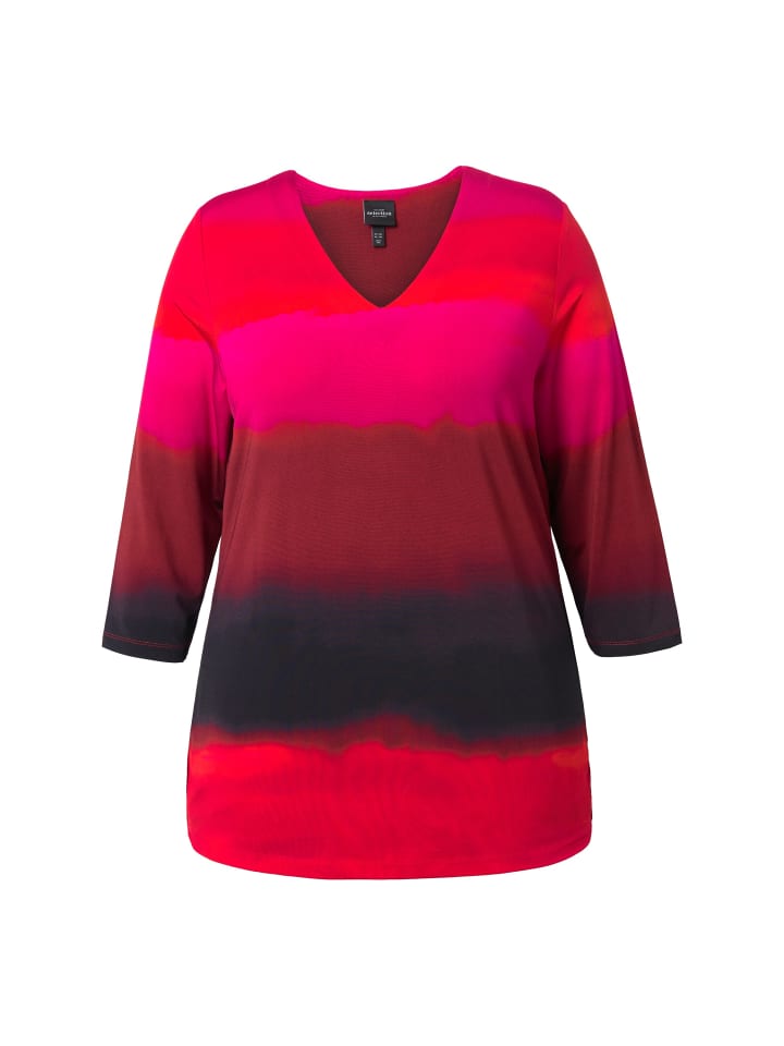 Облегающая рубашка классического кроя из высококачественного облегающего трикотажа с градиентными полосками. V-образный вырез, рукава 3/4.