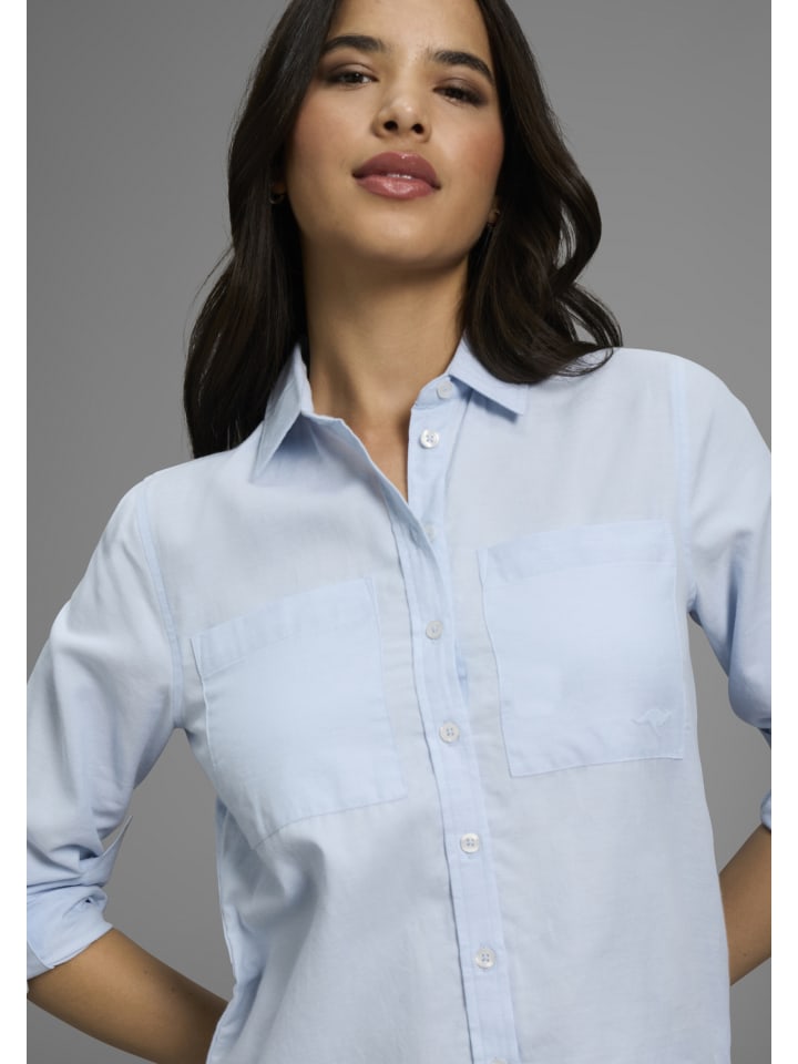 Классическая женская блузка-рубашка от KangaROOS. Свободного кроя. Длинные рукава с хлястиками. Легкая ткань обеспечивает воздушность верха.