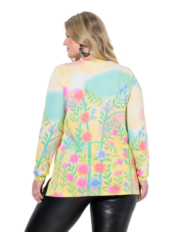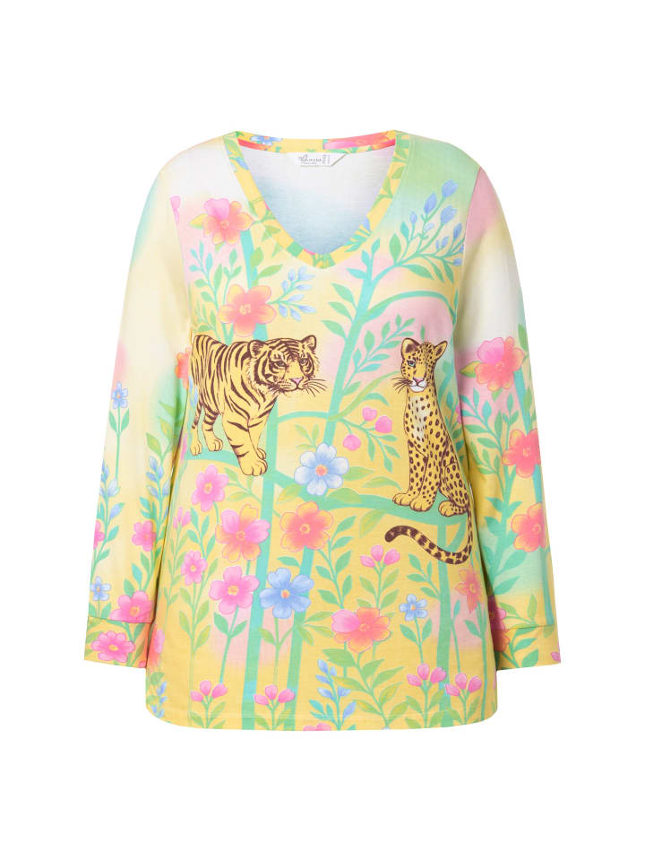 Рубашка с длинными рукавами, классического кроя, из высококачественного трикотажа на основе модала с цветочным и леопардовым принтом по всей поверхности. V-образный вырез, длинные рукава с манжетами.