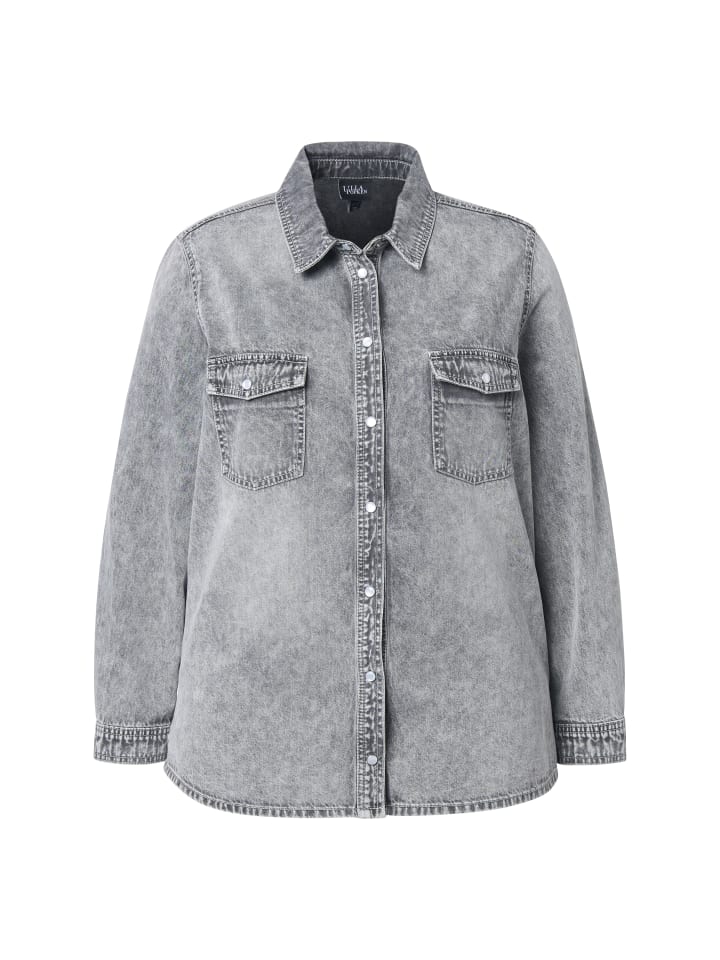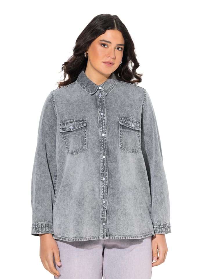 Светло-серая джинсовая блузка-рубашка Ulla Popken