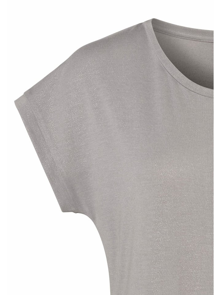 Воздушная футболка от Vivance с красивым блестящим принтом. Эластичный пояс для свободного кроя. Втачные рукава. Струящаяся вискозная ткань.