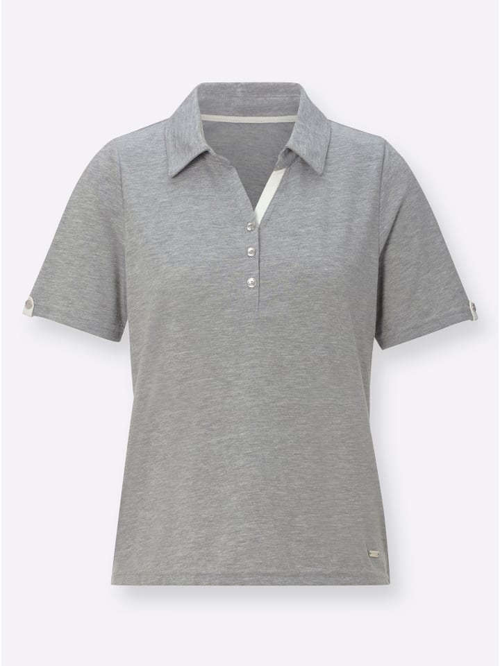 Спортивная рубашка-поло из удивительно мягкого смесового материала. Декоративные накладки и пуговицы на рукавах. Стильные контрастные детали. Боковые разрезы обеспечивают полную свободу движений. Слегка закругленный подол.