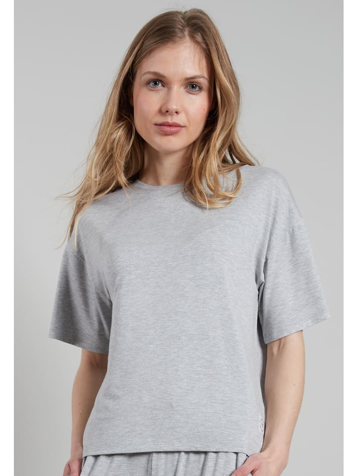 Эта рубашка красиво и комфортно драпируется по фигуре. Изготовленная из мягкой вискозы с добавлением эластичного эластана, ткань джерси идеально адаптируется к вашим фигурам. Гладкая ткань приятно охлаждает кожу, а ее нежная текстура добавляет нотку женственности. Светлый цвет и современный крой придают этому образу неповторимую изюминку.