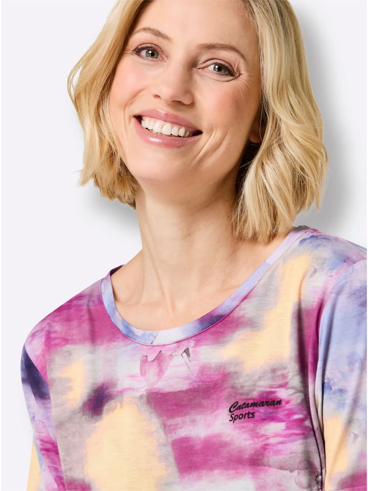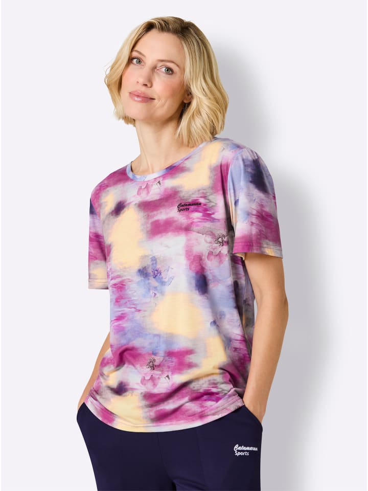 Эта спортивная футболка Catamaran-Sports с ярким цифровым принтом по всей поверхности - яркая и универсальная вещь. Она прекрасно дышит и быстро сохнет благодаря технологии Freshnezz. Круглый вырез горловины и короткие рукава.