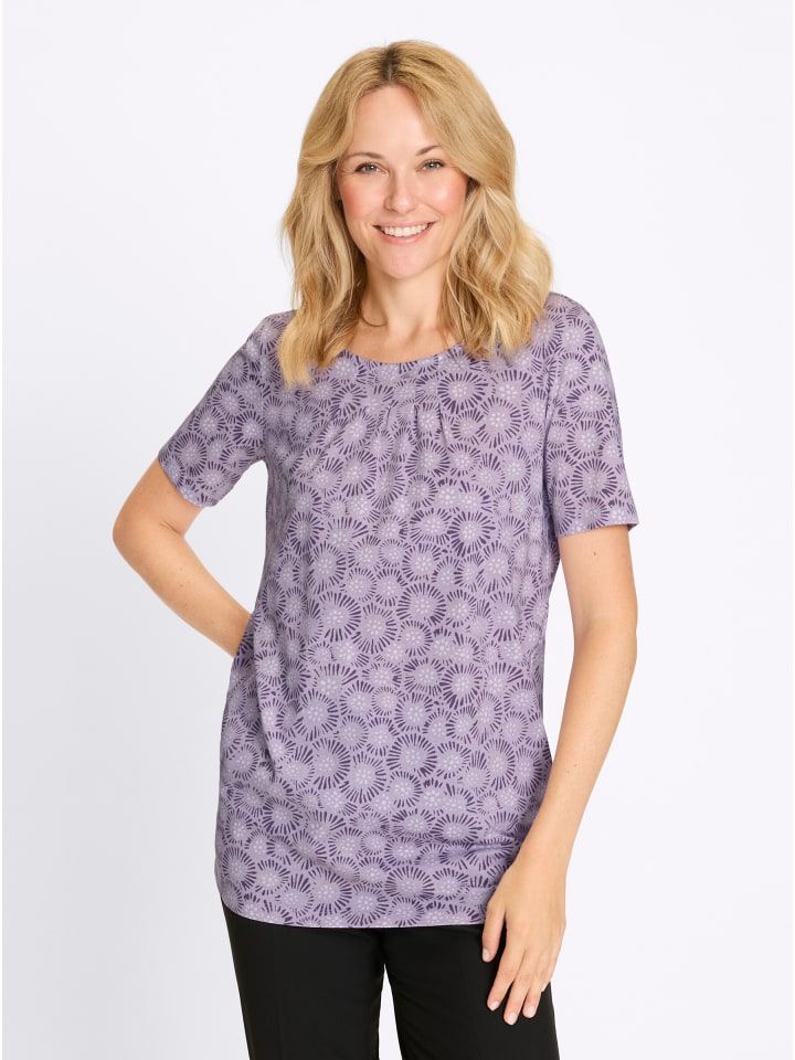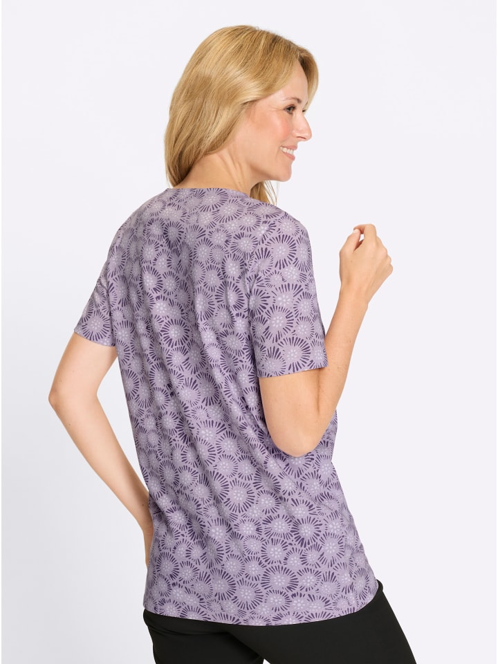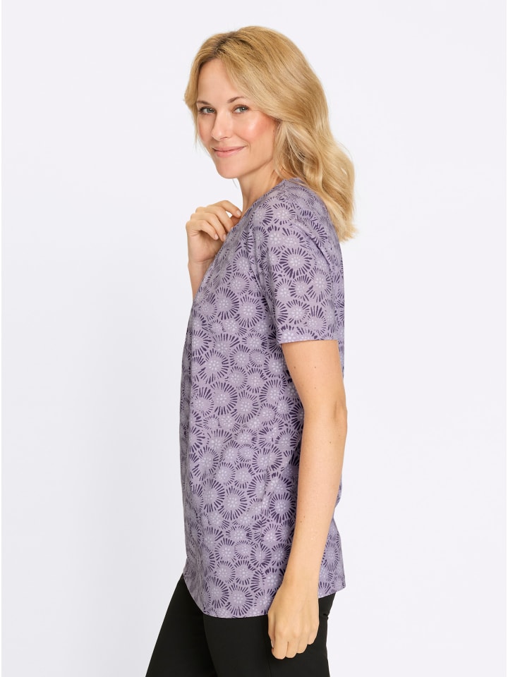 Длинная рубашка с сиренево-инжирным принтом Sieh an!