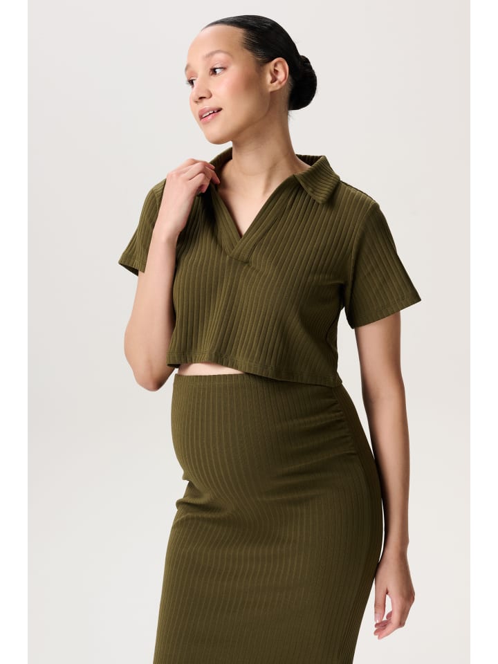 Топ для кормления Aalborg от Noppies Maternity - незаменимая вещь в вашем гардеробе. Этот топ оливково-зеленого цвета с V-образным вырезом и короткими рукавами идеально сочетается с леггинсами с высокой талией, брюками или юбкой. Кроме того, он очень удобен для кормления грудью или сцеживания, ведь его можно просто натянуть. Чего еще желать?