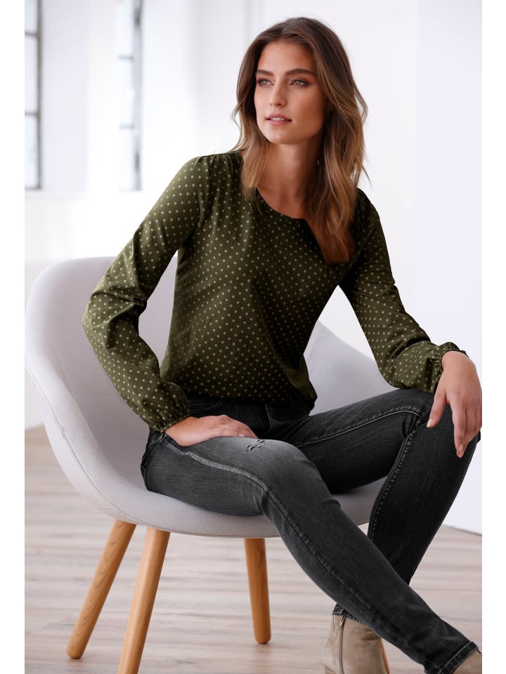 Рубашка с длинными рукавами темно-оливкового цвета Heine