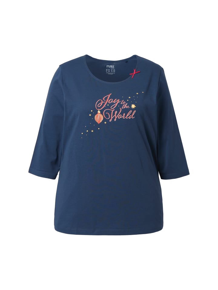 Верх пижамы из органического хлопка. Удобная посадка благодаря мягкому трикотажу с рождественской надписью. Вырез горловины «лодочка», длинные рукава. Органический; сертифицирован ECOCERT Greenlife, лицензия № 152026.