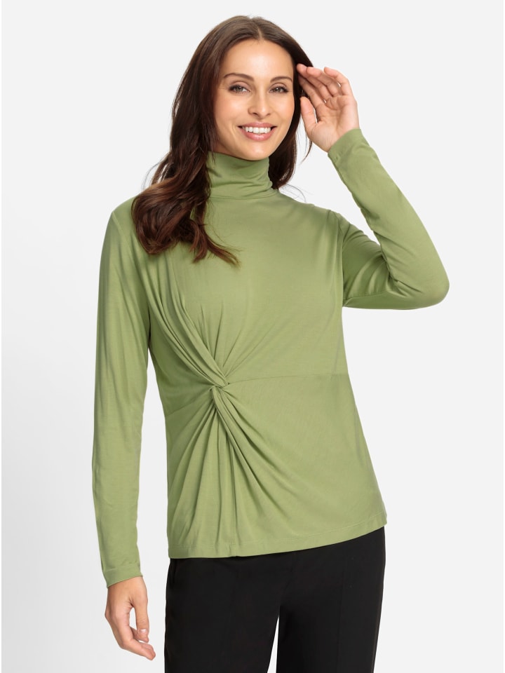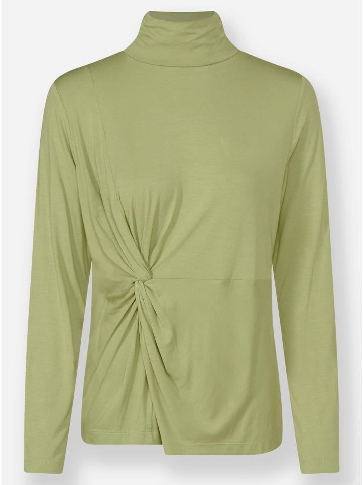 Узелок на талии делает эту рубашку с воротником-стойкой изысканным акцентом! Воротник с боковыми сборками. Длинные рукава.