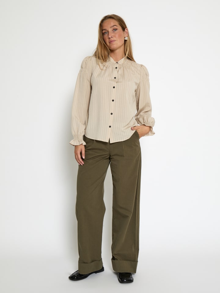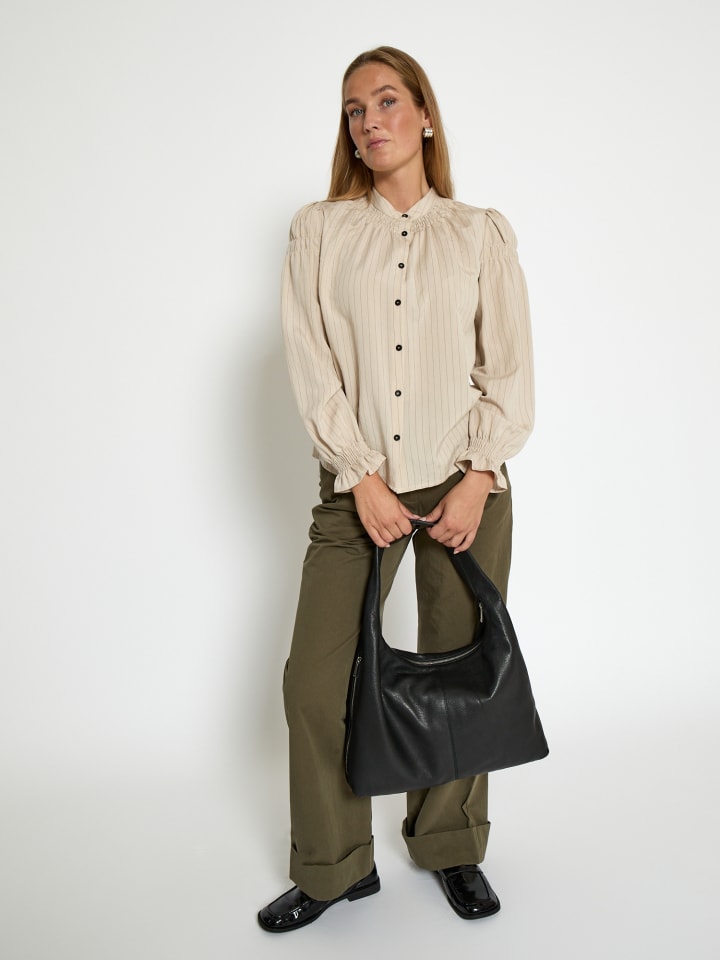 Украсьте свой гардероб рубашкой PCLina от Peppercorn, в которой элегантность сочетается с современным дизайном. Изящный круглый вырез горловины придает утонченную изысканность, которая легко притягивает взгляд. Длинные рукава с мягкими сборками переходят в узкие манжеты со сборкой. Элегантные вертикальные швы удлиняют силуэт и придают ему изысканный вид. Изготовленная из смеси высококачественных тканей, эта рубашка идеально сочетает в себе комфорт и стиль. Сочетайте ее с брюками строгого кроя для создания офисного образа или с любимыми джинсами для шикарного уик-энда.