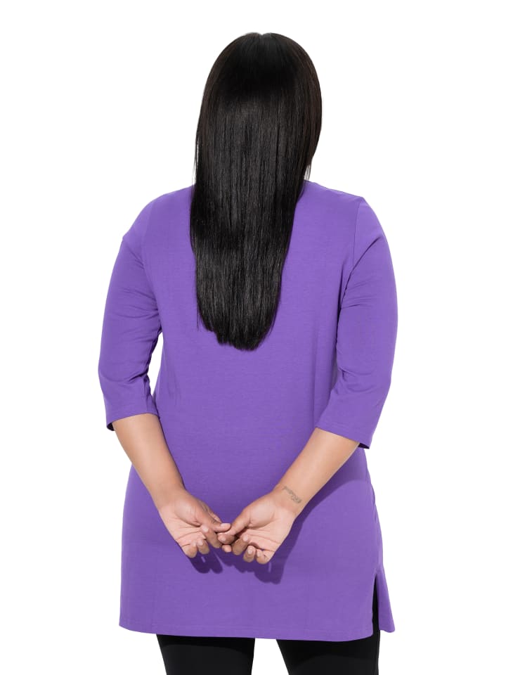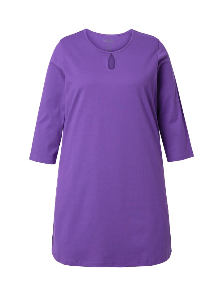 Длинная рубашка А-силуэта. Небольшой вырез под круглым вырезом, рукава 3/4. Удобный широкий подол.