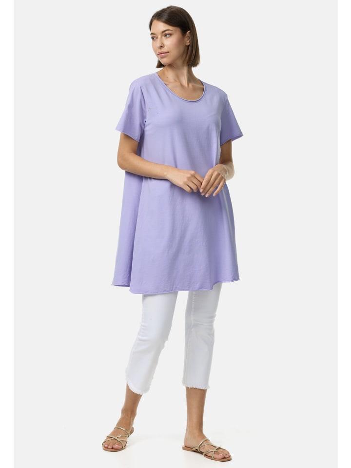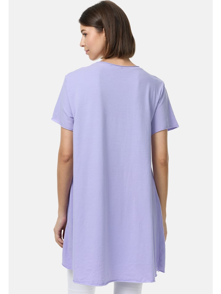 Эта женская футболка удобного кроя имеет слегка расклешенный А-силуэт. В сочетании с удобной длиной, доходящей примерно до середины бедра, это обеспечивает максимальный комфорт. Свободный крой дополняется удобным кроем, короткими рукавами и круглым вырезом. Мягкий материал, состоящий из 95% хлопка, приятен на ощупь и, благодаря 5% эластана, слегка тянется, идеально подстраиваясь под фигуру.