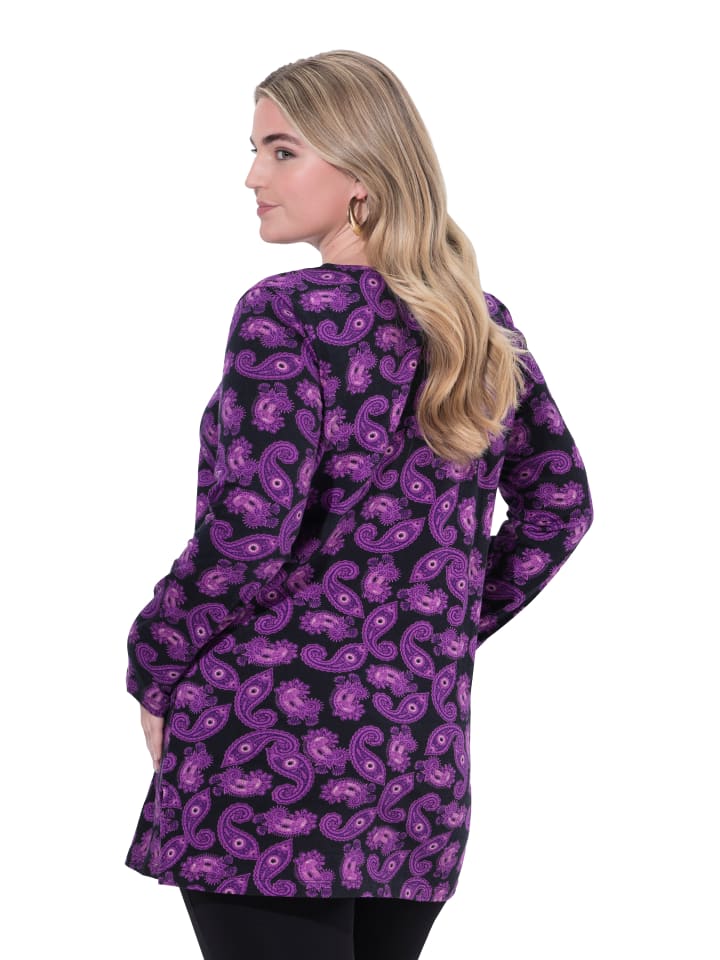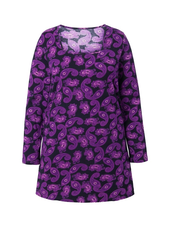 Рубашка А-силуэта с длинными рукавами из чистого хлопка с узором пейсли. Квадратный вырез, длинные рукава. Комфортная ширина подола.