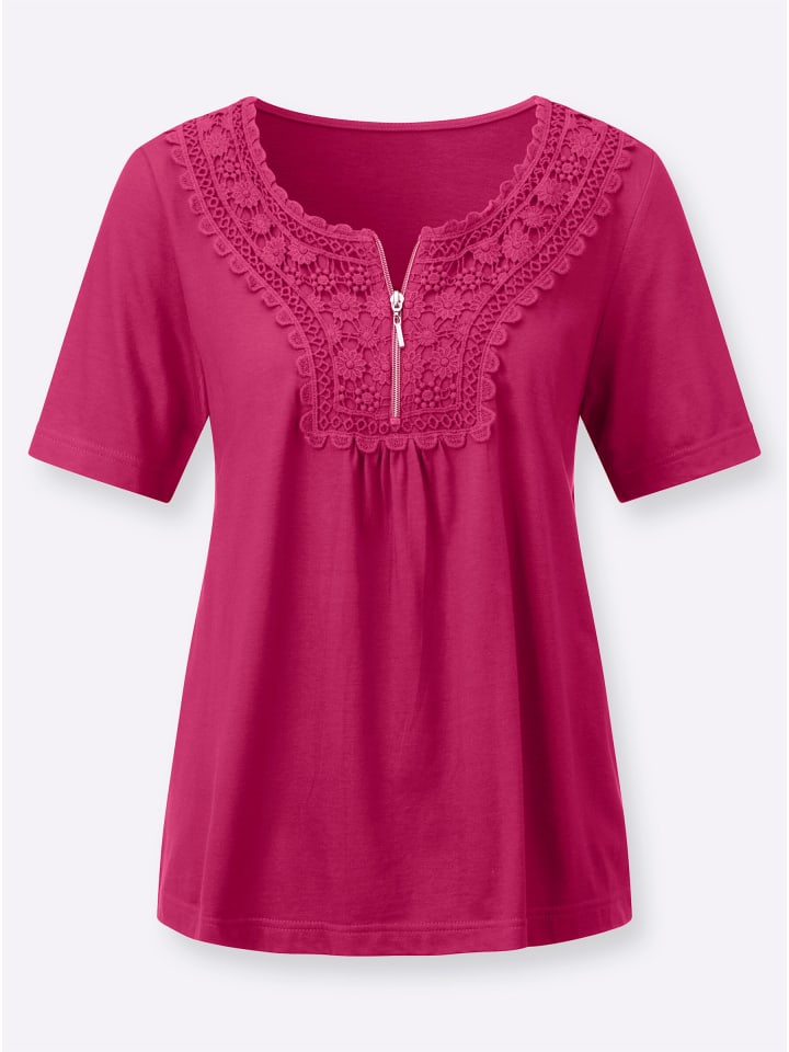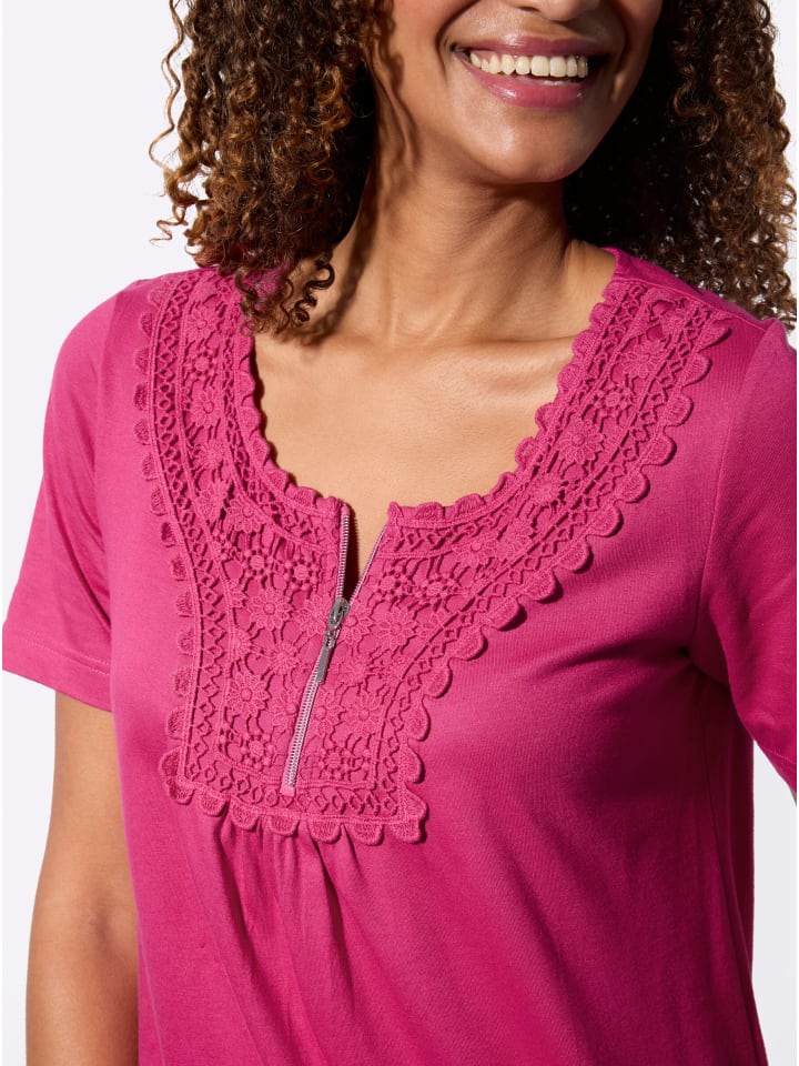 Очаровательная рубашка с короткими рукавами и красивым кружевом в тон спереди. Круглый вырез и короткая молния. Изготовлена из супермягкой смеси материалов.