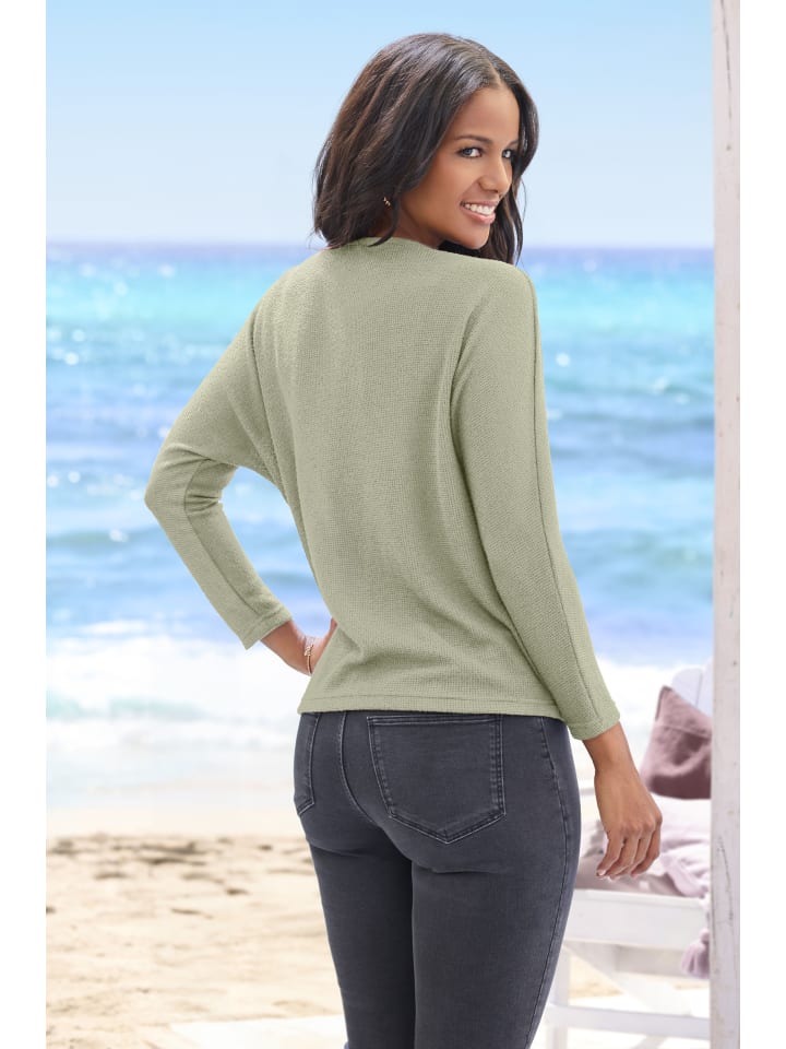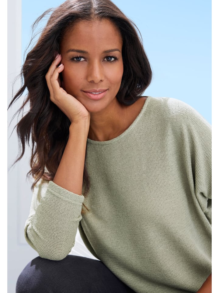 Однотонная рубашка с длинными рукавами от Vivance и круглым вырезом. Свободный крой, спущенная линия плеча и слегка расклешенные рукава «летучая мышь». Изготовлена из исключительно мягкого трикотажного полотна с гладкой изнанкой.