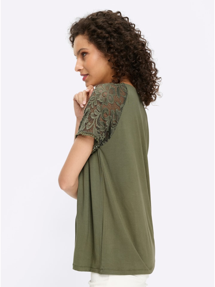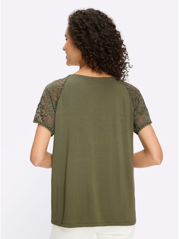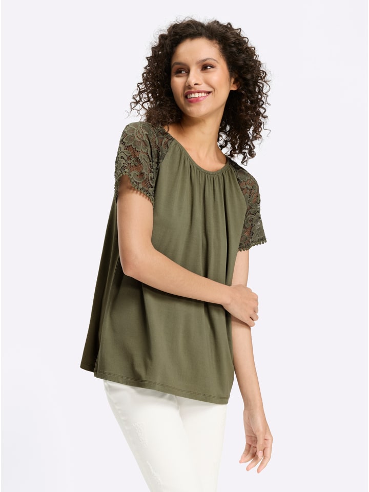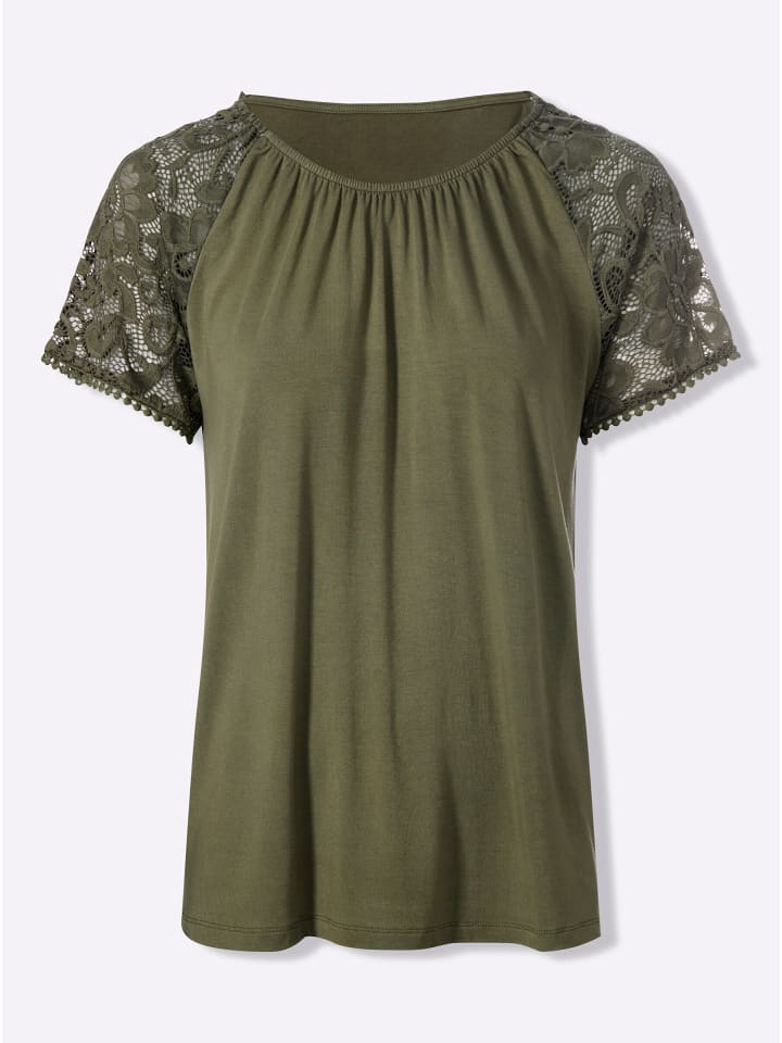 Рубашка с короткими рукавами цвета хаки Heine