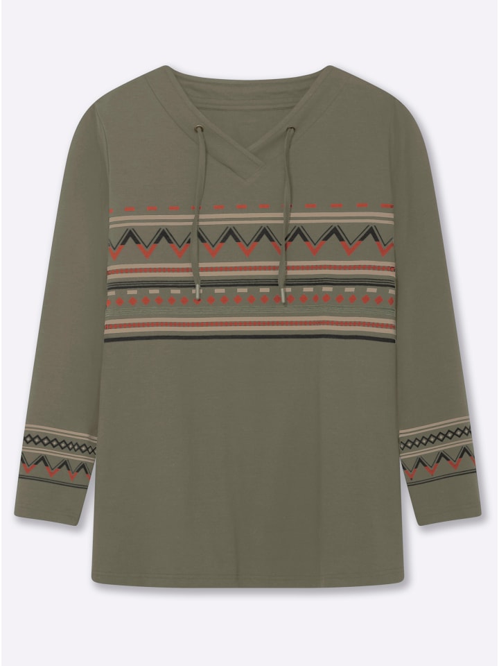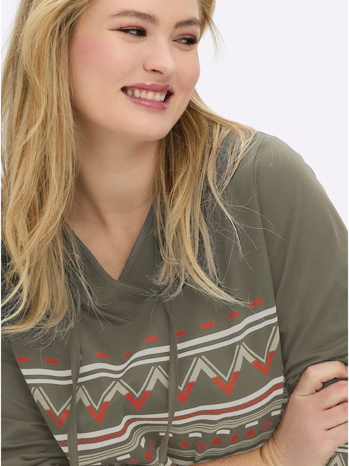 Рубашка с принтом цвета хаки и бежевого sheego