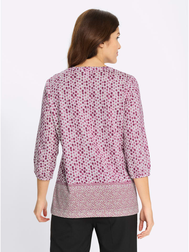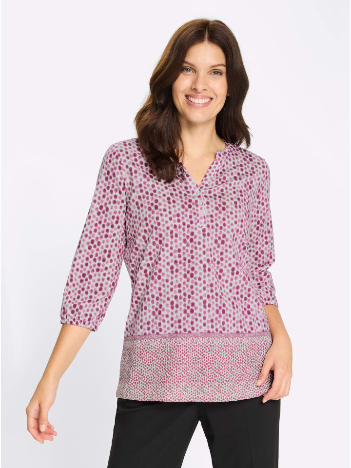 Эта рубашка с рукавами 3/4 впечатляет сплошным принтом и имитацией каймы. Круглый вырез с открытым V-образным вырезом и короткая планка с пуговицами в тон. Эластичные манжеты обеспечивают комфорт.