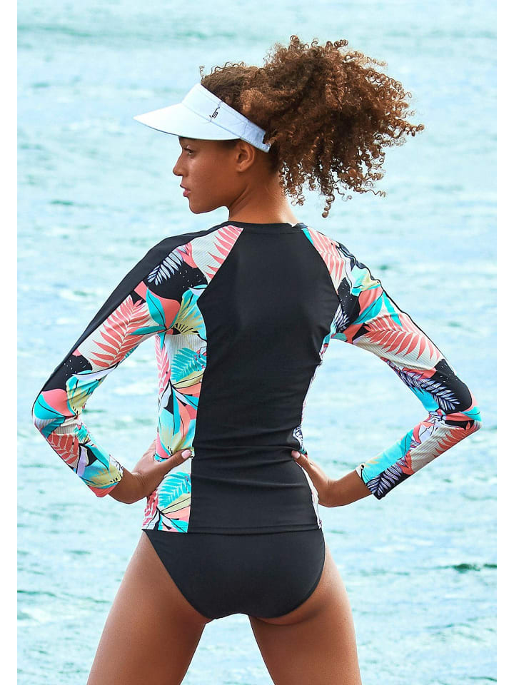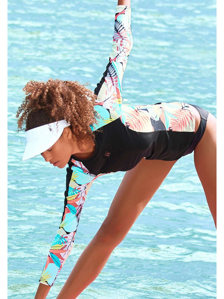 Черная рубашка для плавания с принтом LASCANA ACTIVE