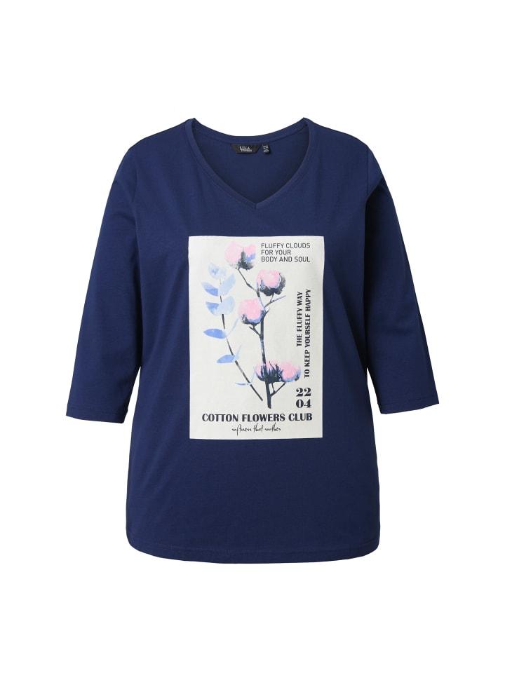 Футболка классического кроя из мягкого трикотажа с растительным мотивом. V-образный вырез, рукава 3/4.