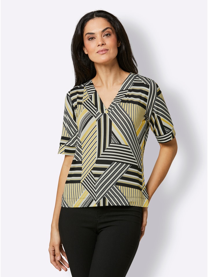 Рубашка из лиоцелла: исключительно приятное для кожи сочетание мягкого, дышащего лиоцелла и комфортного эластичного эластана превращает ношение этой рубашки в настоящее удовольствие! Отличается привлекательным полосатым дизайном, V-образным вырезом и отделкой внахлест. Рукава чуть длиннее до середины бедра.