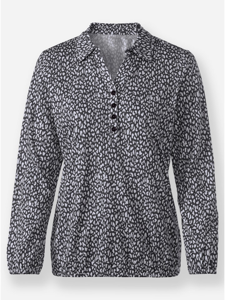 Очаровательно! Вы получите множество комплиментов благодаря этой рубашке с минималистичным принтом по всей поверхности. Она имеет привлекательный открытый V-образный вырез и короткую планку с мерцающими пуговицами. Эластичные манжеты на длинных рукавах и подол обеспечивают удобную посадку. Мягкая и удобная. Соответствует инициативе «Сделано в Африке» (Cat Made in Africa).