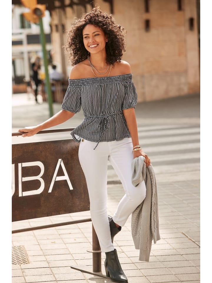 Рубашка с баской в черно-белом цвете LASCANA 7 386₽