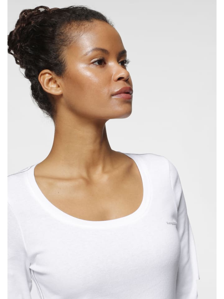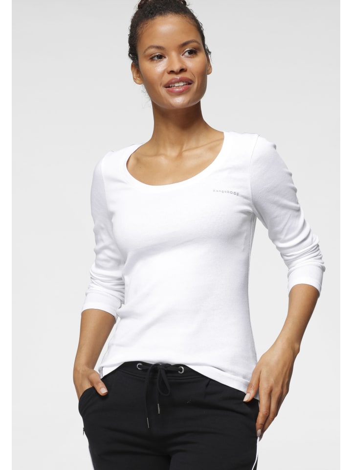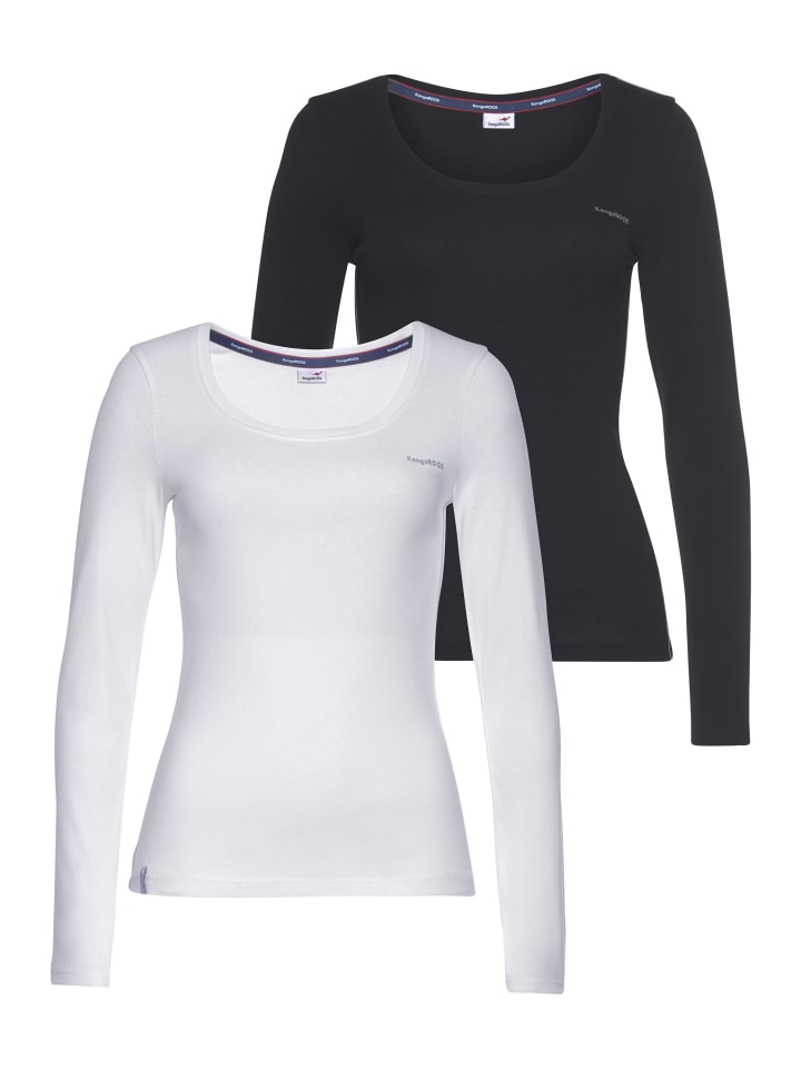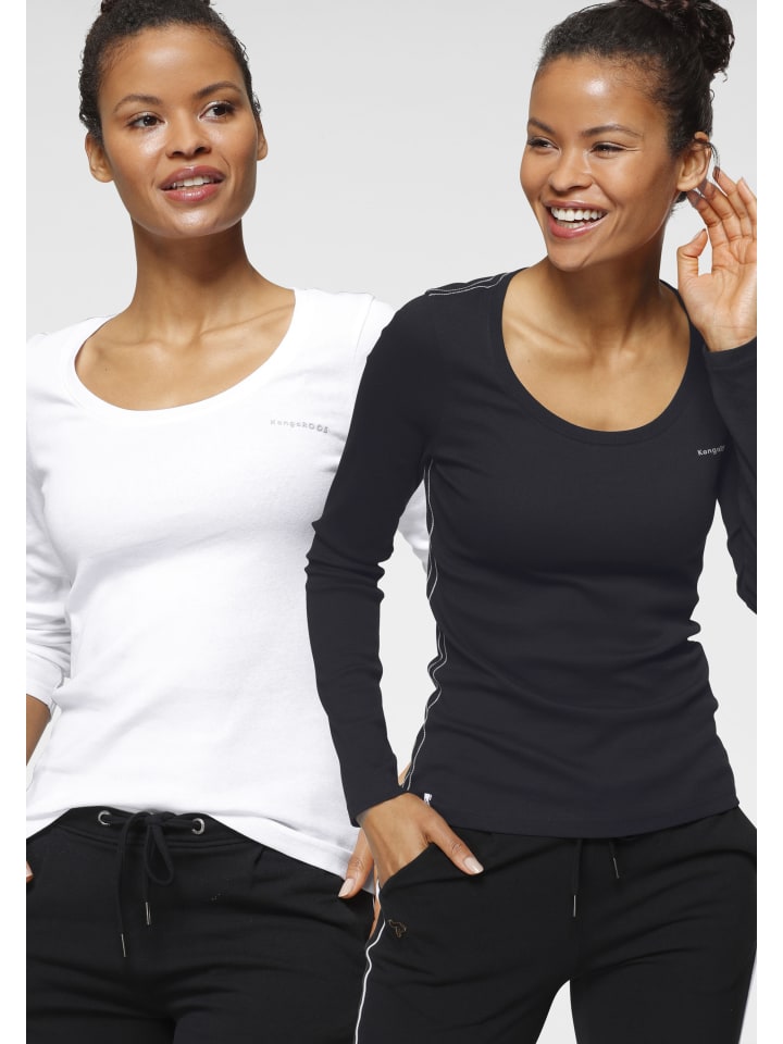 Универсальная женская рубашка с длинными рукавами от KangaROOS в меланжевом стиле. Длина до бедер, стандартный крой и стильный принт. Благодаря эластичному трикотажному материалу верх мягко драпируется и обеспечивает комфорт. Доступно в упаковке из 2 шт.