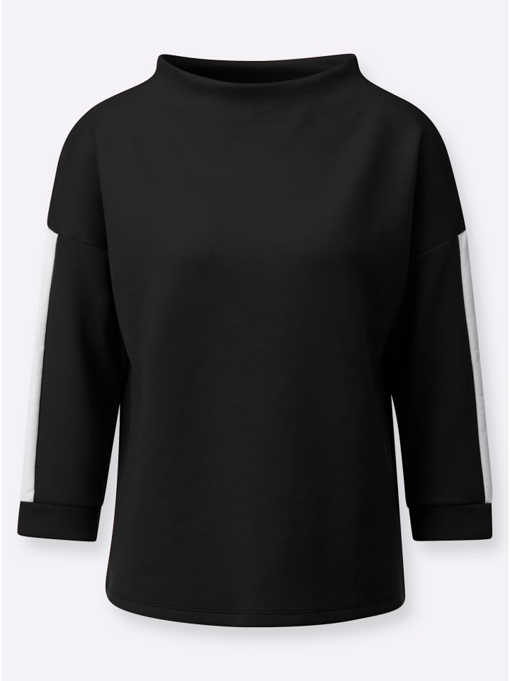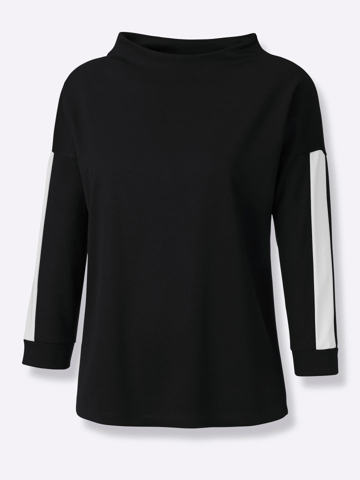 Сохраняет форму, но невероятно мягкий: толстовка из трикотажа интерлок. Непринужденный стиль футболки с широким воротником-стойкой, спущенными плечами и контрастной полосой по рукавам три четверти с манжетами.