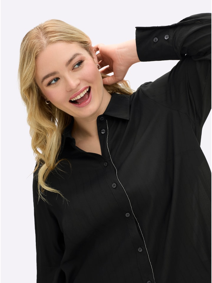Черная полосатая блузка-рубашка sheego