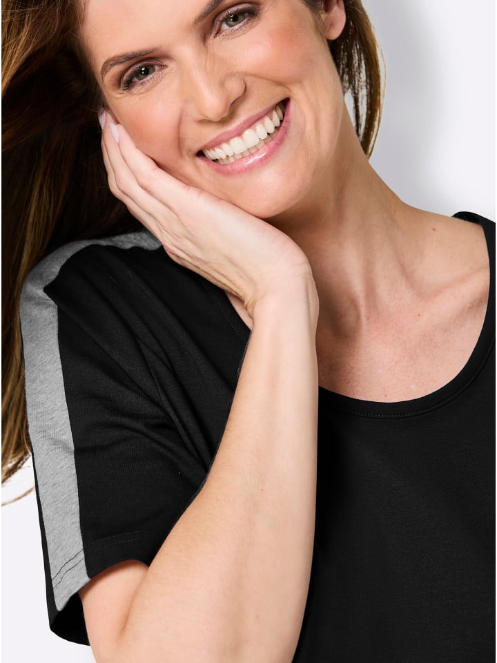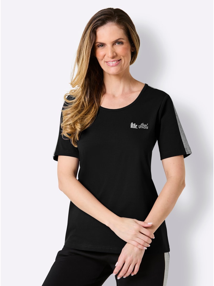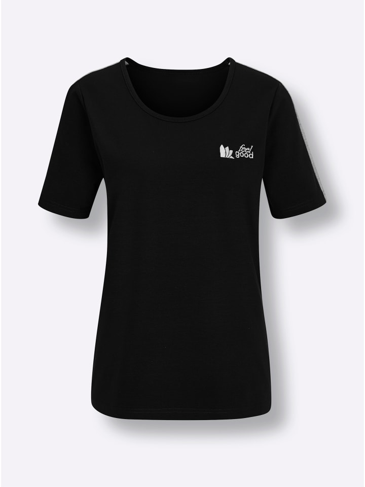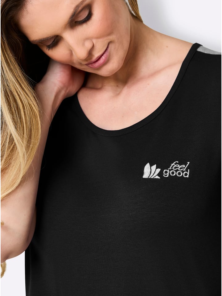 Футболка от Feel Good из трикотажного полотна. С узкой окантовкой на круглом вырезе и широкой контрастной вставкой на укороченном рукаве. Поддерживает инициативу «Хлопок, сделанный в Африке».