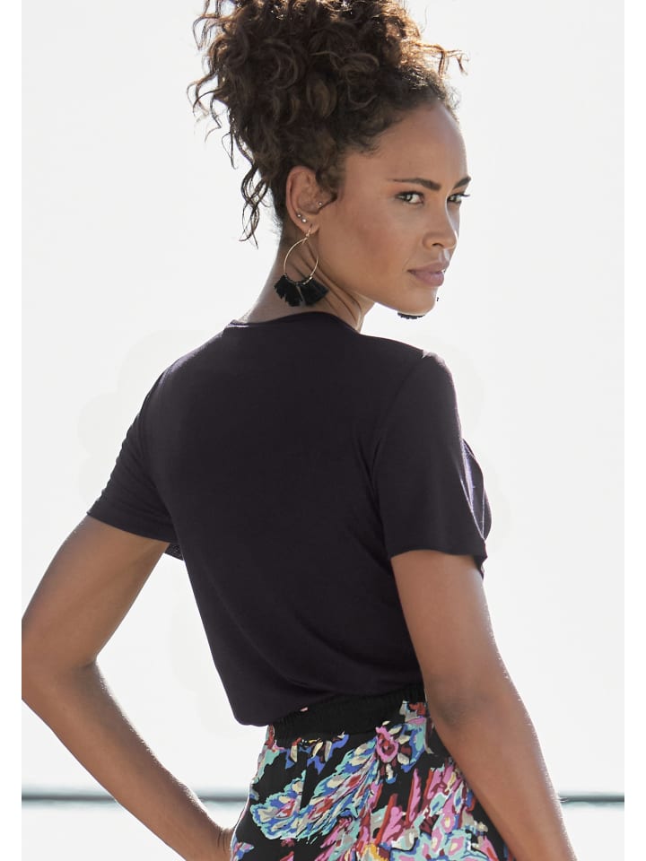 Однотонная футболка от Buffalo с модными вырезами спереди на круглом вырезе. Свободный крой. Прямой подол. Мягкая, струящаяся вискоза.