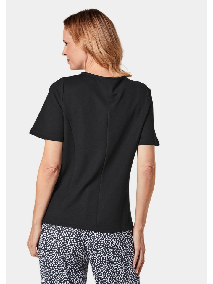 Рубашка, которая быстро становится настоящей приманкой для глаз благодаря слегка асимметричному подолу! Женственный вырез «лодочка» и струящаяся ткань, подчеркивающая фигуру, идеально дополняют модный образ этой новой любимицы. Имеет красивые швы и рукава до середины голени. Длина: около 66 см для размера 46, около 62 см для размера 23.