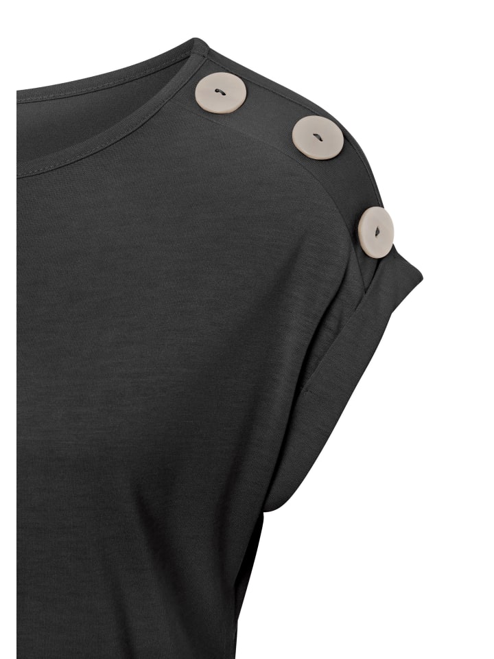 Рубашка из буйволиной шерсти с элегантными перламутровыми декоративными пуговицами вдоль левого плечевого шва. Круглый вырез горловины и короткие бесшовные рукава-подвороты. Прямой подол. Слегка приталенный крой. Мягкий вискозный трикотаж.