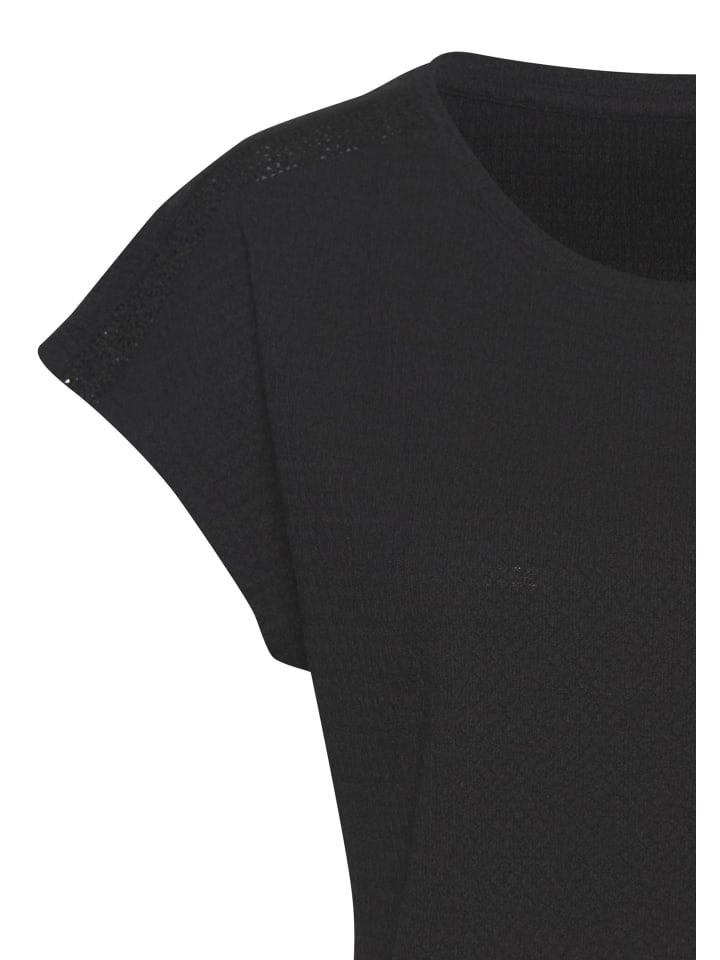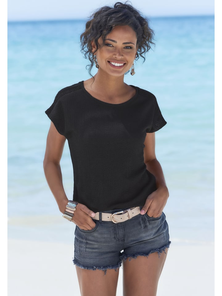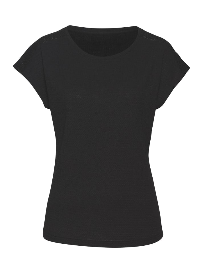 Женственная футболка с круглым вырезом от Vivance с узкой вставкой крючком на плече. Универсальная и удобная в носке. Изготовлена из текстурированной креповой ткани с добавлением переработанного полиэстера.