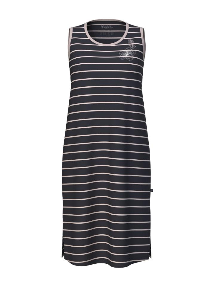 Ночная рубашка А-силуэта без рукавов из мягкого полосатого трикотажа с цветочной вышивкой. Круглый вырез. Боковые разрезы для дополнительного комфорта.