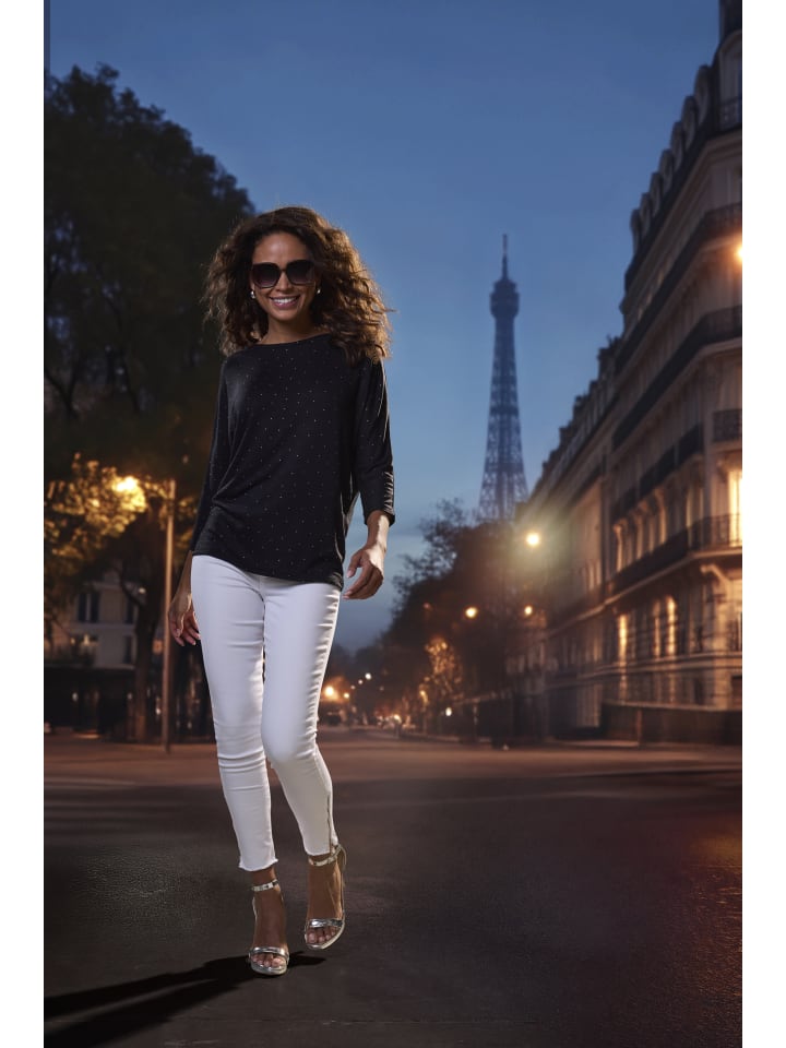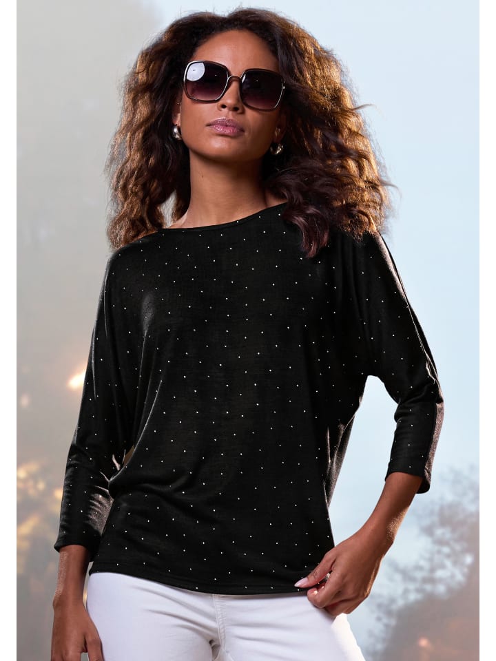 Трикотажный топ от Lascana. С отделкой стразами. Рукава 3/4. Круглый вырез. Свободный крой. Высококачественная мягкая ткань с вискозой, изготовленная из улучшенного сырья.