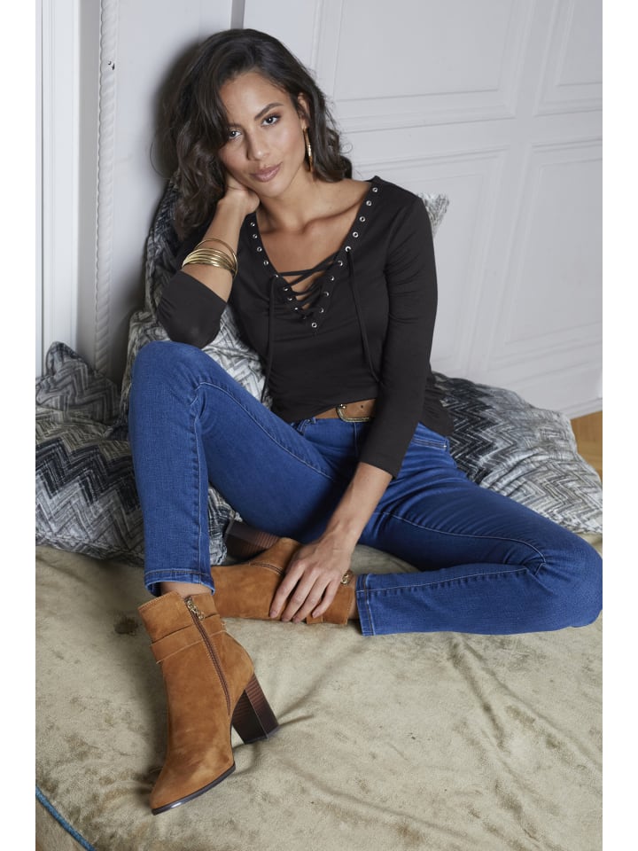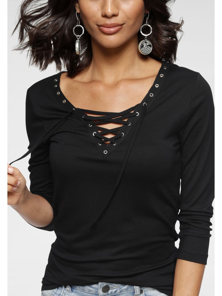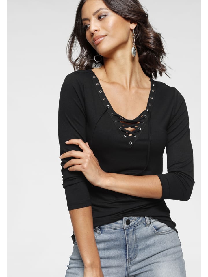 Универсальная женская рубашка с рукавом 3/4 от Laura Scott. Облегающий крой длиной до бедер идеально подходит для создания комфортных и стильных образов. Верх красиво драпируется благодаря эластичному трикотажному полотну.