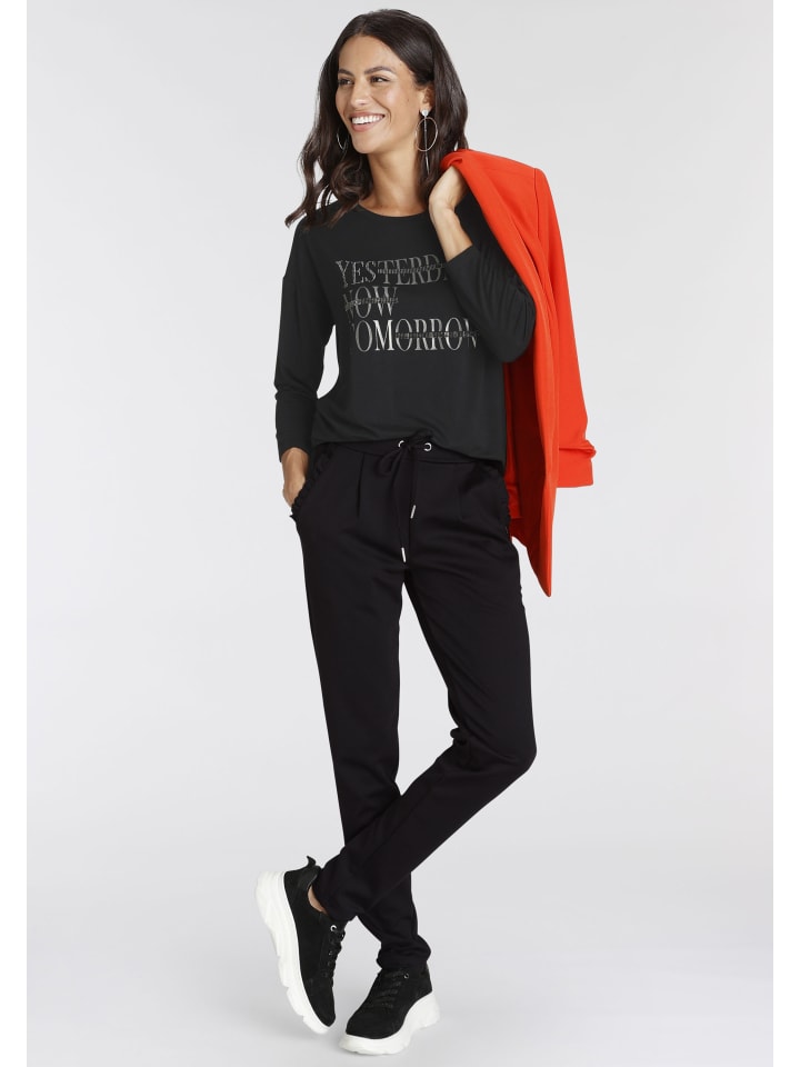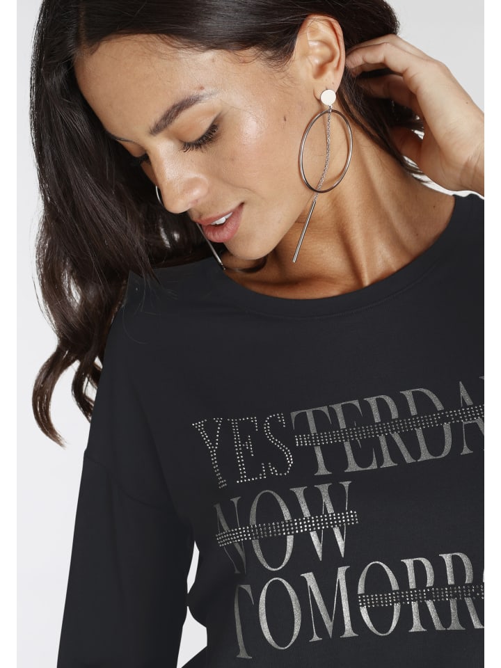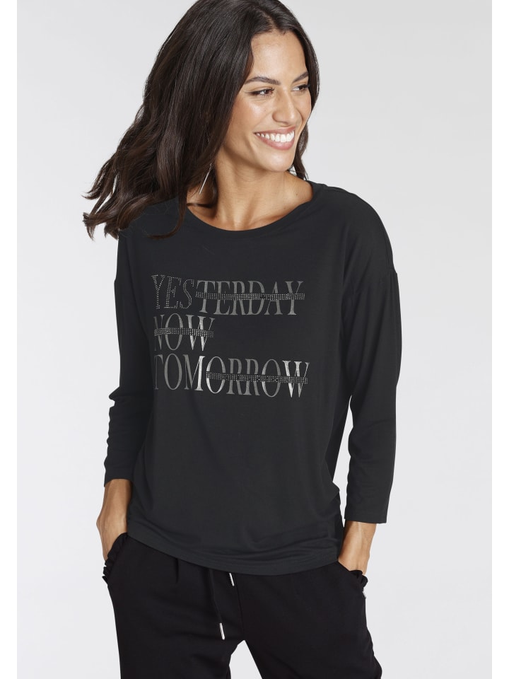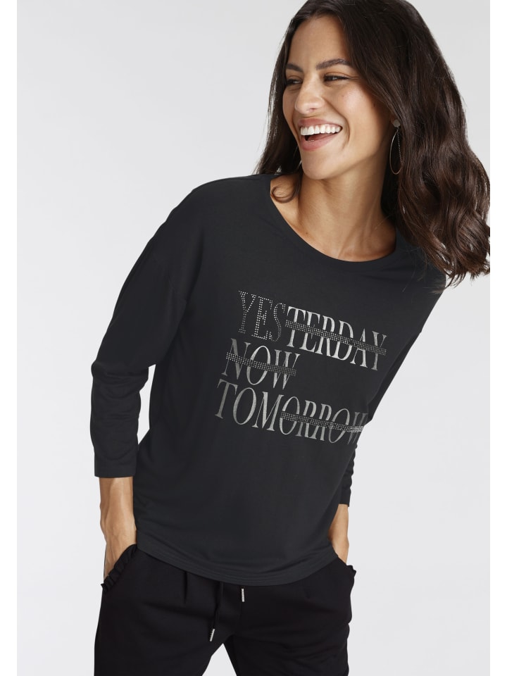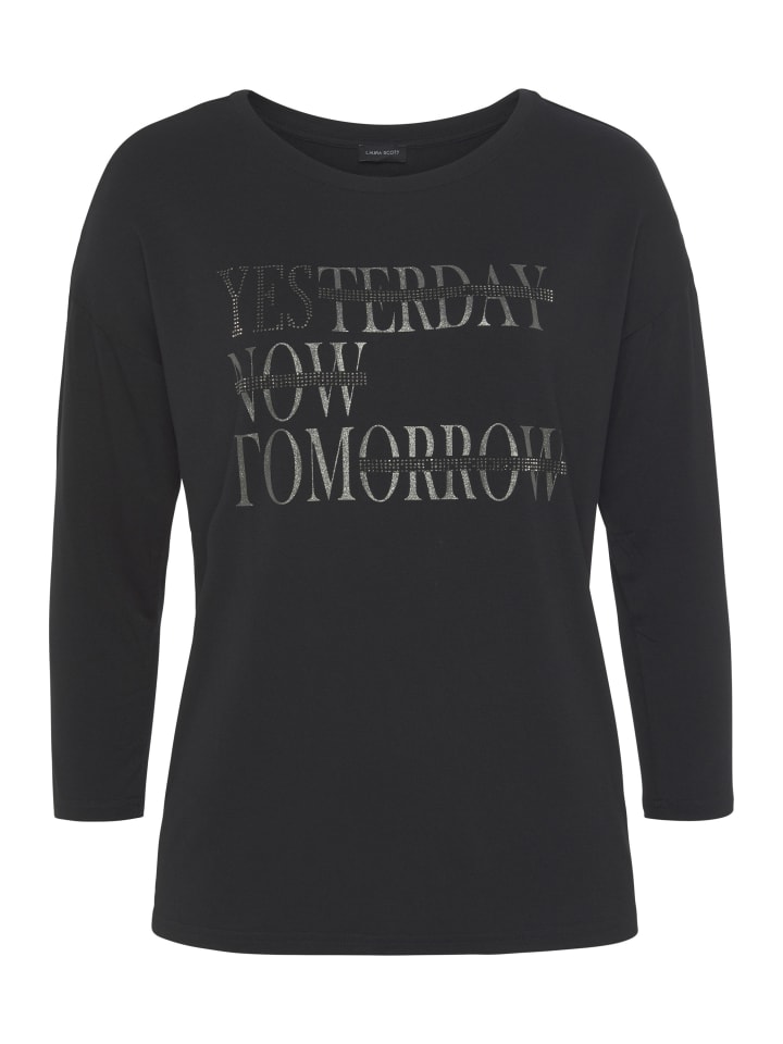 Универсальная женская рубашка с рукавом 3/4 от Laura Scott с мерцающими блестками. Свободный крой до бедер идеально подходит для создания комфортных и стильных образов. Мягкий трикотаж обеспечивает комфорт.