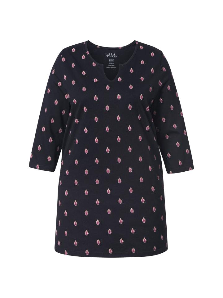 Удлиненная рубашка А-силуэта из мягкого трикотажа с рисунком. Вырез горловины - туника, рукава 3/4. Комфортный широкий подол.