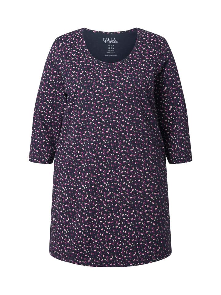 Рубашка А-силуэта с длинными рукавами из мягкого трикотажа с рисунком. Круглый вырез, рукава 3/4. Удобный широкий подол.